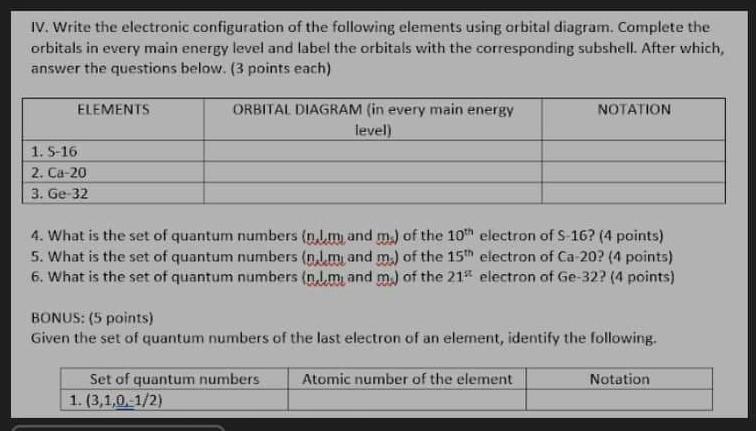 Solved Iv Write The Electronic Configuration Of The Chegg Com